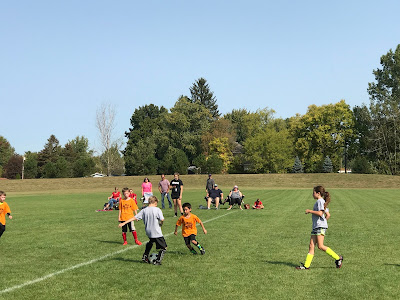 Put a roast, carrots and potatoes in the oven. Made chili for our camping trip. Got ready and went to Jack's first soccer game. He just started loving any kind of ball, but soccer is the one he wanted to play. I was amazed how he was always after the ball and kicked it so good. He was so happy when he saw his teacher was there to watch him play. Vikki went to Melissa's house to ride with her, which was good because Melissa's van wouldn't start because the battery was dead. Bruce took Max to his appointment and Hailey was with Ally so Melissa, Jack and Evan got in Vikki's car and rode with her. Good thing she only brought Isaac. God sure worked it out so Jack could get to his game. I met them there and saw them as soon as I got out of my car. After the game, Vikki picked up Hailey and they all came to my house to eat the roast I had made. The kids played with legos and Hailey watched a show and then it was time for Vikki to go get Peyton and leave Isaac with Rody so we could go to Adam's game. Vikki said we needed to leave so we headed to Midland and then realized we were an hour early. We went to Salvation Army and Goodwill to look around. I found an Anna Maria Island sweatshirt at Salvation Army. We went to Adam's game after that. Adam has improved so much and was really moving after the ball. He got a couple of good kicks in, but I missed getting a picture. Boo Hoo! Both games were 3 to 2. Our grandkid's team's didn't win but they sure played good games. Vikki took Peyton to the bathroom and when she walked by the concession stand, they gave her the leftover pizza and breadsticks for free. Kimmy divided it up between the kids at her house. We had a nice time at Kimmy and Jared's after the game. Their kittens are so cute. Love how happy the boys are when they hold them. Came home and Vikki helped count the collection for the Marine Corp League.