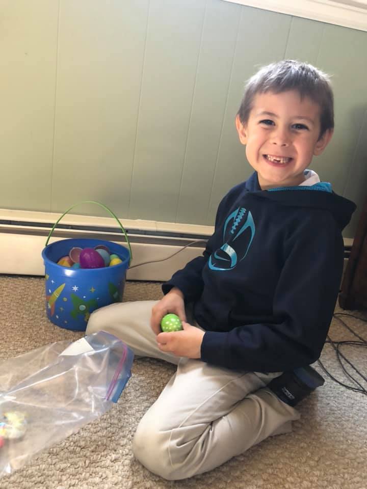 | Evan, Peyton and Eli going through the things in their Easter Baskets |