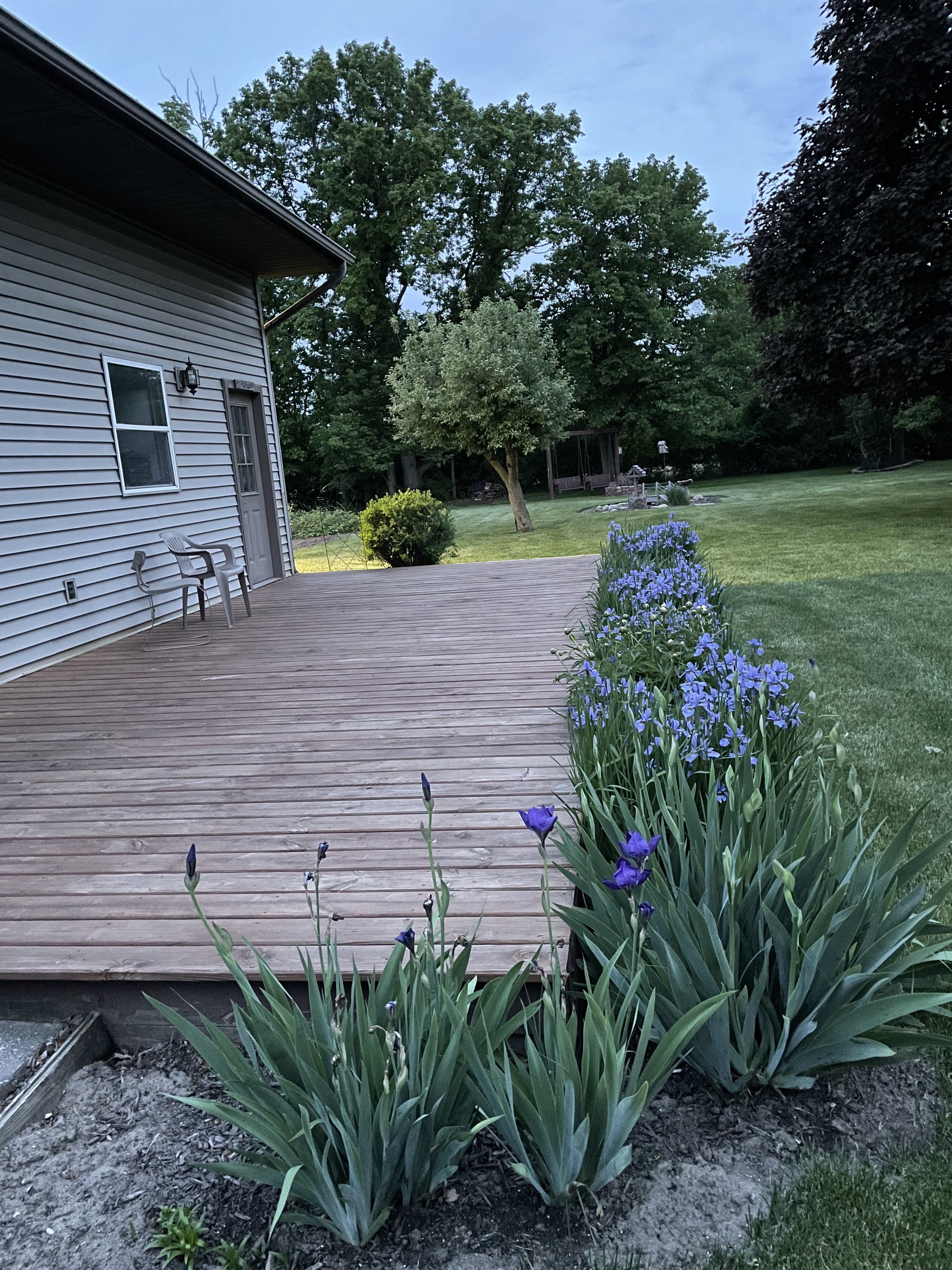 | Evening picture...love when all of these are in blossom...peonies in the middle will be next |