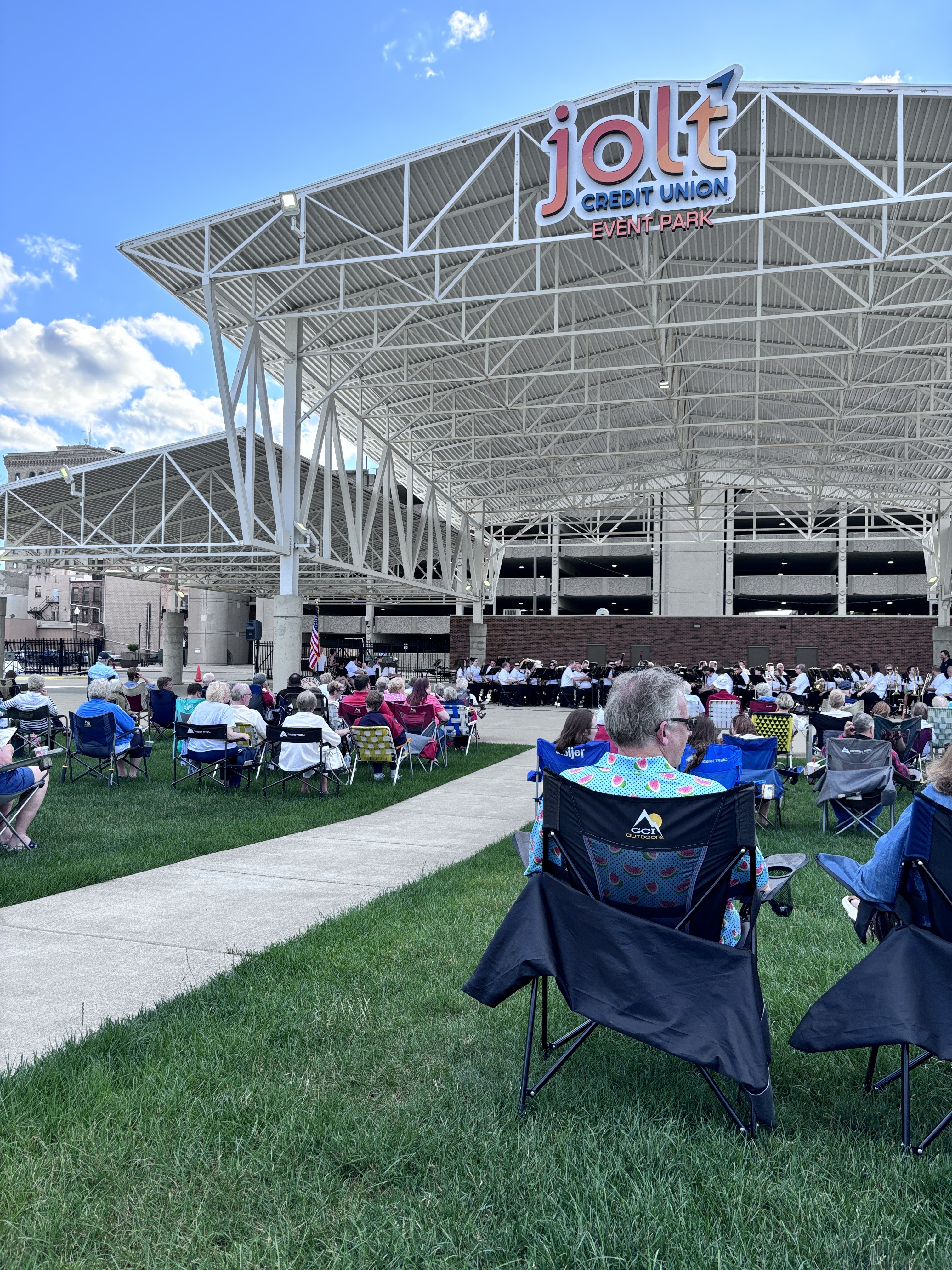 In the evening, we went to Jacob’s concert. It was a good thing Kimmy reminded me, because I packed more stuff in the camper and would have forgot about it. I love going to the Eddy Band Concert and watching and listening to Jacob play. They all sound just amazing. I always love seeing Jacob during intermission and talking to him. Wes, Gayla and Joel are always there too which is fun. Vikki, Peyton, & Isaac came too. And of course Jared, Kimmy and Eli. So fun to hang out together and listen to great music. Sweatshirts were needed tonight as it was a cool evening with the wind blowing and no sun shining on us. Vikki shared her mentos and juicy candies with everyone.